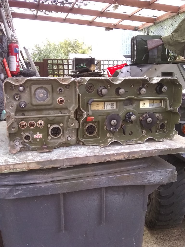 Last week I acquired another one – not for me this time but for the Saladin armoured car at Hever Castle. This set was recovered from a target wreck in Kuwait shortly before the first Gulf War and shipped back to this country. So, plug it in, turn it on and it also works, more or less. It does produce power on AM so there is scope here for making a good one out of the two. It also gave me a belt (175v) so it needs looking into.