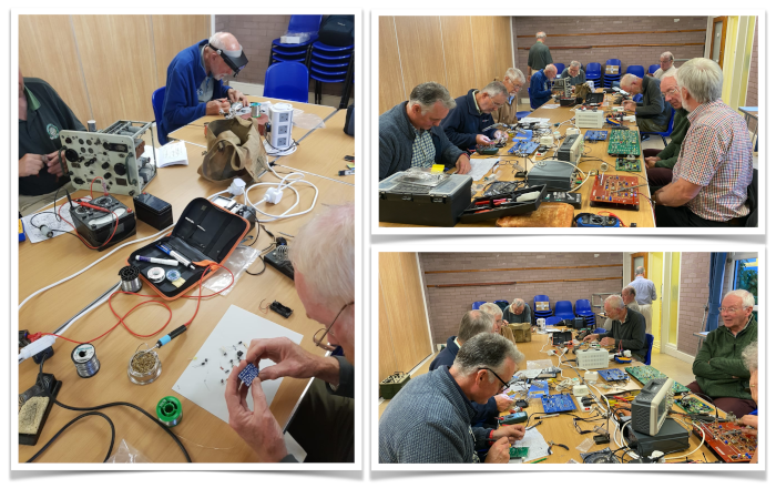 On July 8th we had a construction night at Bidborough, with members building several different types of kits – AM, Airband, FM receivers, amplifiers, Pixie CW HF Transceivers, or working on fault-finding, or restoration of military equipment. Plenty of soldering going on – through-hole and some surface-mount! Kits provided by Chris G6HTH.